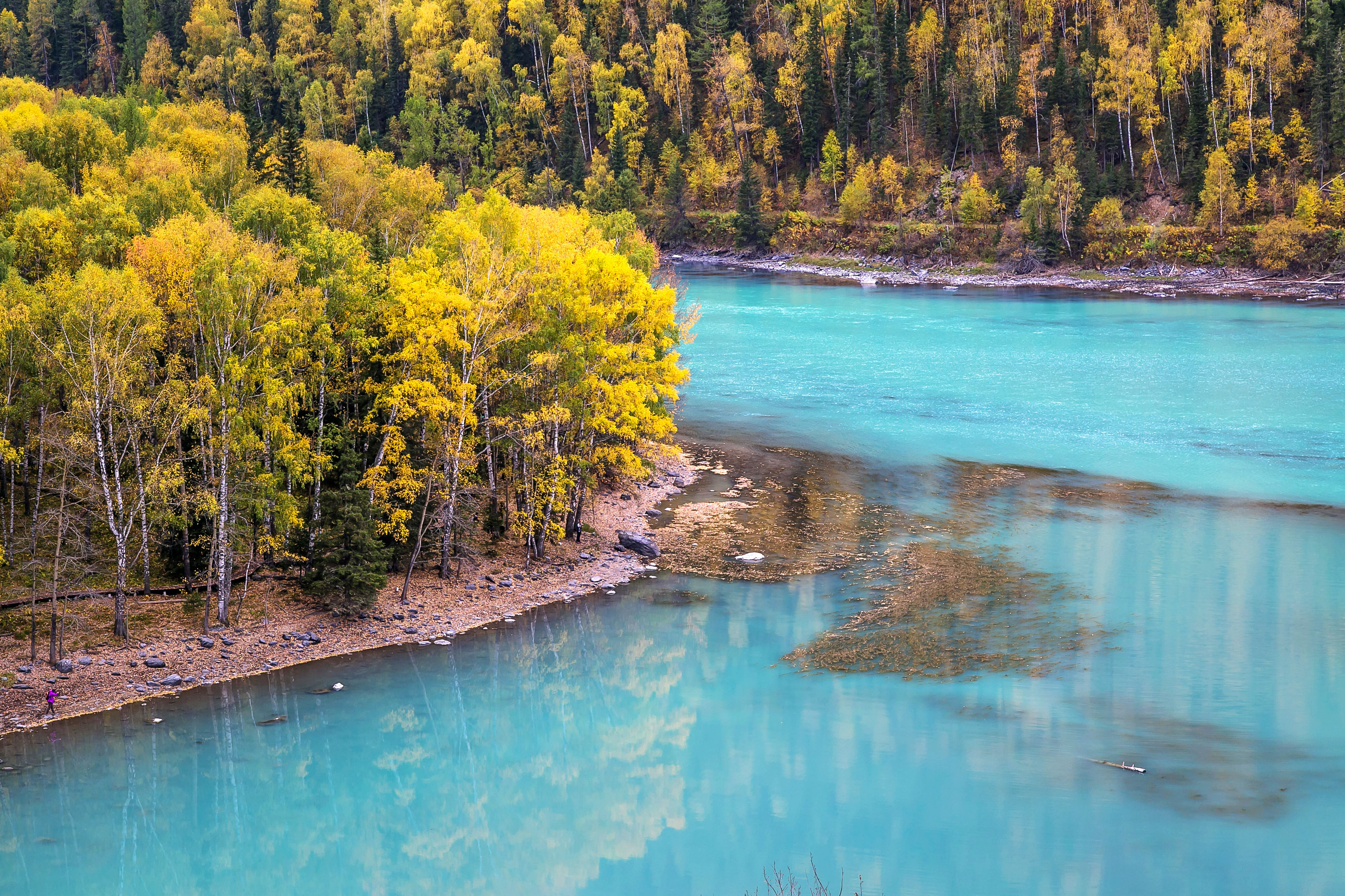 喀纳斯仿佛闯入了秋天的童话秘境,五彩斑斓的茂林与湛蓝的湖水交相辉映,一切都是那么静谧而美好。喀纳斯主要景点就是喀纳斯湖、观鱼台和三湾(神仙湾、月亮湾和卧龙湾),喜欢户外徒步的朋友,可以来一场喀纳斯三湾徒步,美轮美奂的风光,让人内心澄澈。