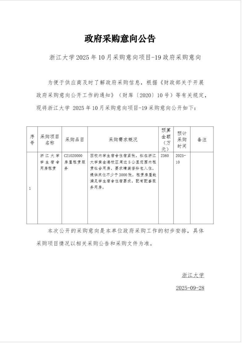 此为浙江大学2025年10月采购意向项目,本次公开的采购意向是采购工作的初步安排,具体采购项目情况以相关采购公告和采购文件为准。